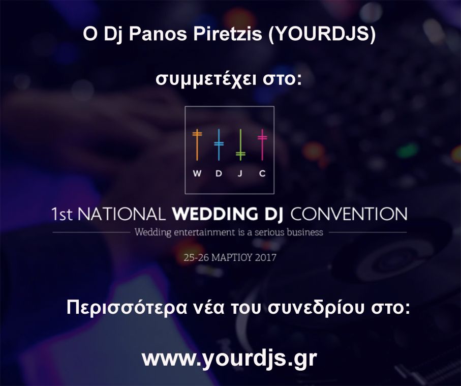 H Your Djs ανακοινώνει τη συμμετοχή της στο πρώτο Wedding Dj Convention που θα λάβει χώρα στις 25 & 26 Μαρτίου 2017 στον Πολυχώρο Πολιτισμού "Αθηναίς" στον Κεραμικό στην Αθήνα.